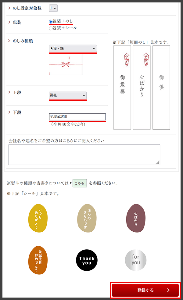 包装とのしの設定方法